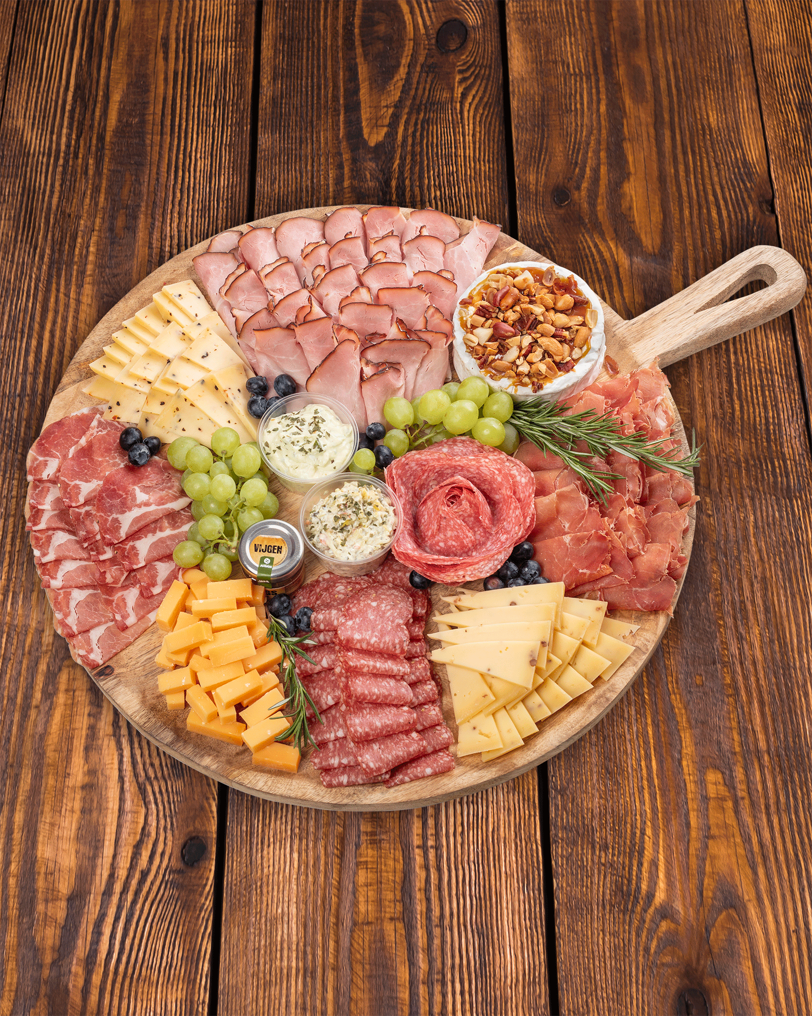 Binnenlandse kazen Buitenlandse kazen Vleeswaren Borrelplanken Salades Tapanades Noten Chocolade Wijnen